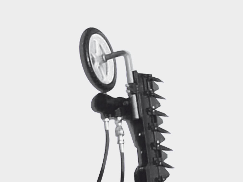 Completa di: barra falciante verticale da 2.10/2.50/3.00 mt, cavalletto di sostegno provvisto di ruote, flangiatura standard.