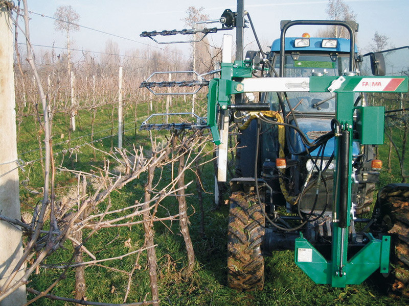 Gli accessori comprendono: il convogliatore alza tralci, il comando joystick e l’impianto idraulico indipendente.
