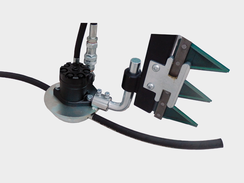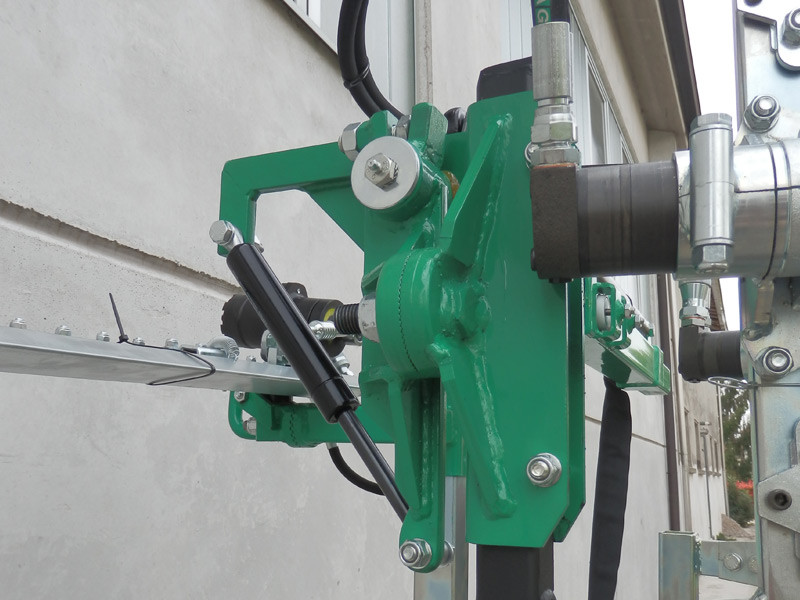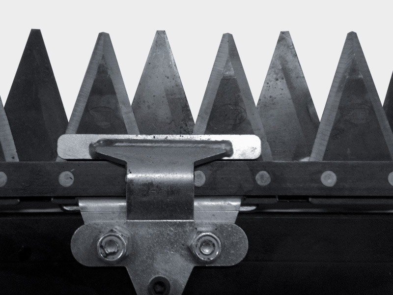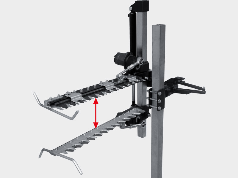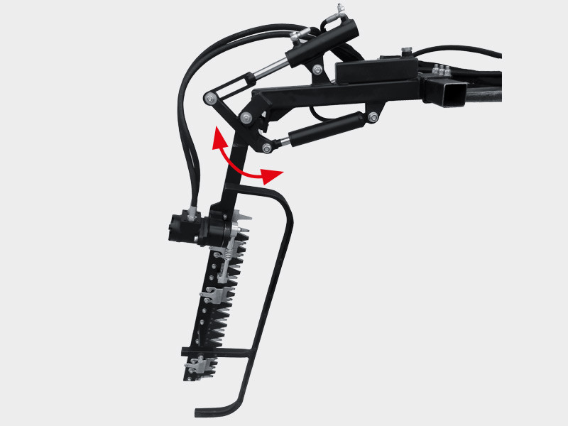 Il modello viene fornito con: distributore idraulico, regolazione della larghezza tra le barre verticali, 2 barre verticali da 1,80 mt o 2,10 mt monolama autoaffilanti, 1 barra orizzontale monolama autoaffilante, flangiatura d’attacco al trattore, cavalletto di sostegno regolabile in altezza.