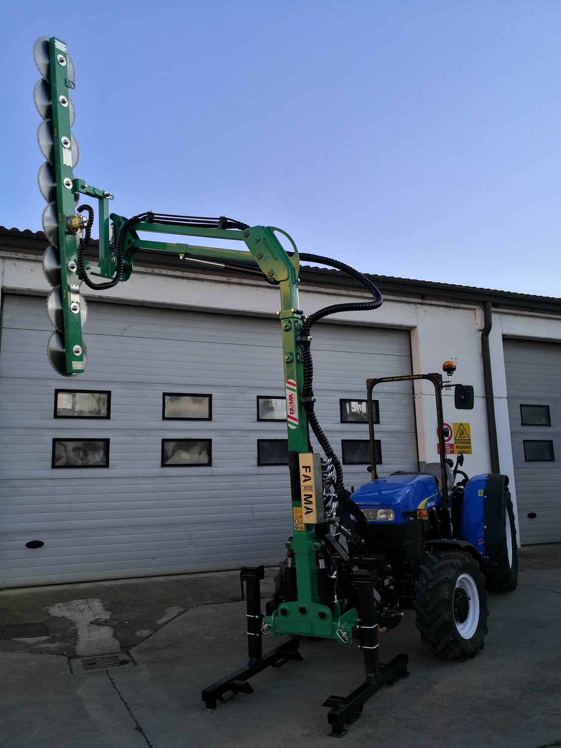 Écimeuse pour taille estivale et pre-taillage d’hiver appliqué au tracteur équipé d'un élévateur frontale ou d'une bridage.